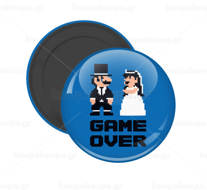 8bit Game Over Couple Wedding, Μαγνητάκι ψυγείου στρογγυλό διάστασης 5cm