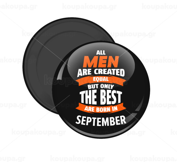 All men are created equal but only the best are born in September, Μαγνητάκι ψυγείου στρογγυλό διάστασης 5cm