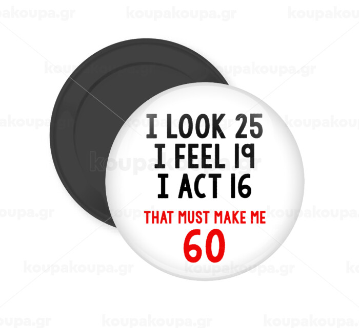 I look, i feel, i act..., Μαγνητάκι ψυγείου στρογγυλό διάστασης 5cm