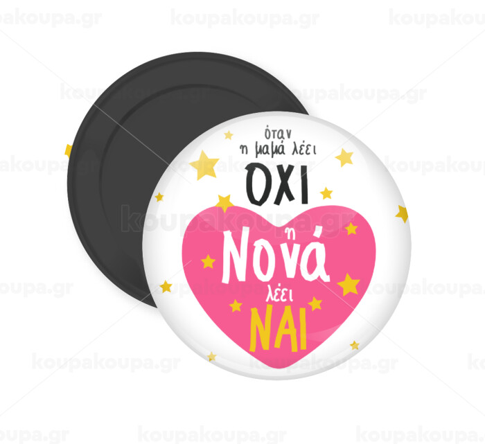 Η νονά λέει ναι!!!, Μαγνητάκι ψυγείου στρογγυλό διάστασης 5cm
