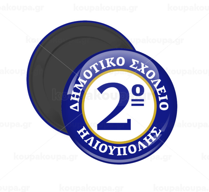 Έμβλημα Σχολικό μπλε/χρυσό, Μαγνητάκι ψυγείου στρογγυλό διάστασης 5cm