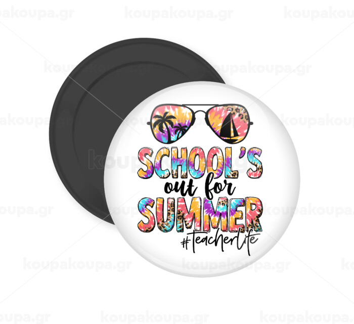 School's Out For Summer Teacher Life, Μαγνητάκι ψυγείου στρογγυλό διάστασης 5cm