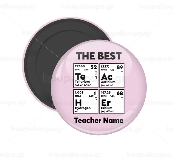 THE BEST Teacher chemical symbols, Μαγνητάκι ψυγείου στρογγυλό διάστασης 5cm