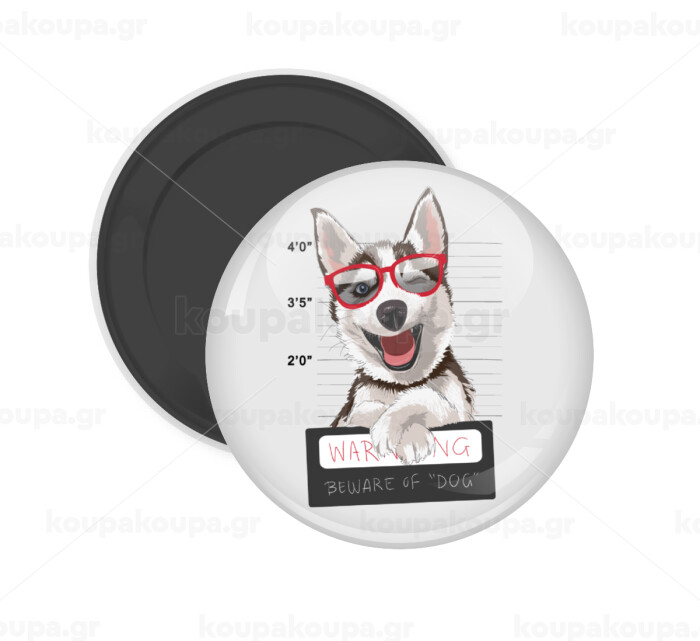 Warning, beware of Dog, Μαγνητάκι ψυγείου στρογγυλό διάστασης 5cm