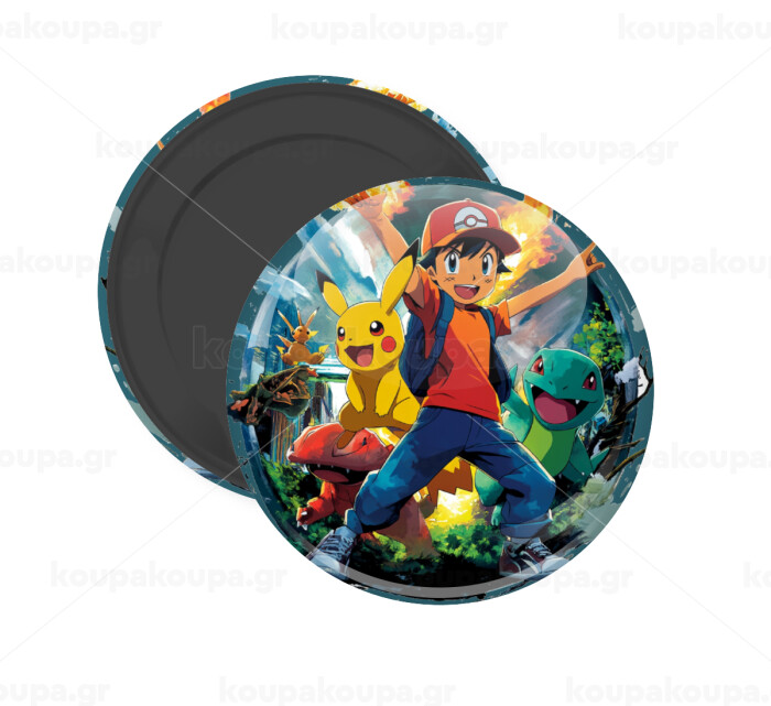 Ash Ketchum & Pikachu, Μαγνητάκι ψυγείου στρογγυλό διάστασης 5cm