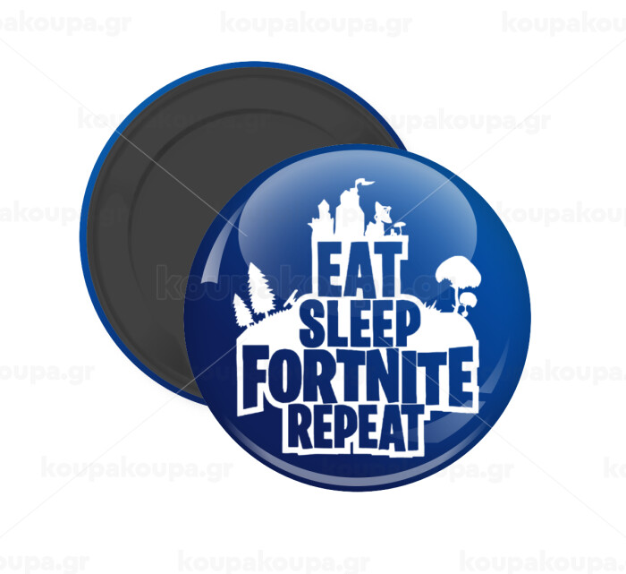 Eat Sleep Fortnite Repeat, Μαγνητάκι ψυγείου στρογγυλό διάστασης 5cm