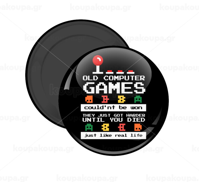 OLD computer games couldn't be won just like real life!, Μαγνητάκι ψυγείου στρογγυλό διάστασης 5cm