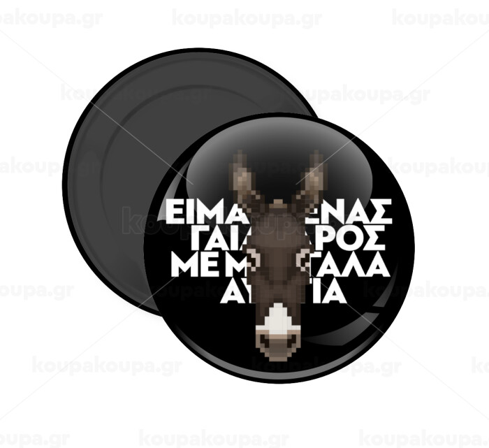 Είμαι ένας γάιδαρος με μεγάλα αυτιά., Μαγνητάκι ψυγείου στρογγυλό διάστασης 5cm