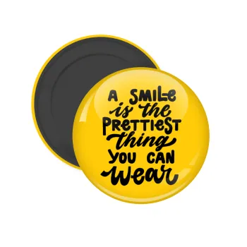 A smile is the prettiest thing you can wear, Μαγνητάκι ψυγείου στρογγυλό διάστασης 5cm