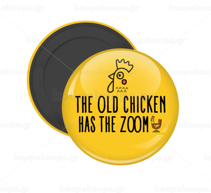 The old chicken has the zoom, Μαγνητάκι ψυγείου στρογγυλό διάστασης 5cm
