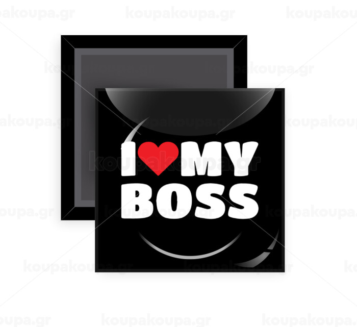 I LOVE MY BOSS, Μαγνητάκι ψυγείου τετράγωνο διάστασης 5x5cm