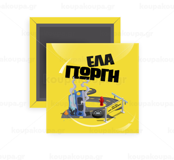 Έλα Γιώργη, πω πω μια στροφάρα, Μαγνητάκι ψυγείου τετράγωνο διάστασης 5x5cm