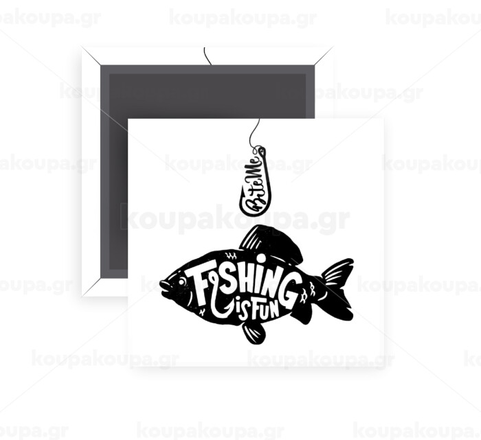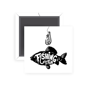Fishing is fun, Μαγνητάκι ψυγείου τετράγωνο διάστασης 5x5cm