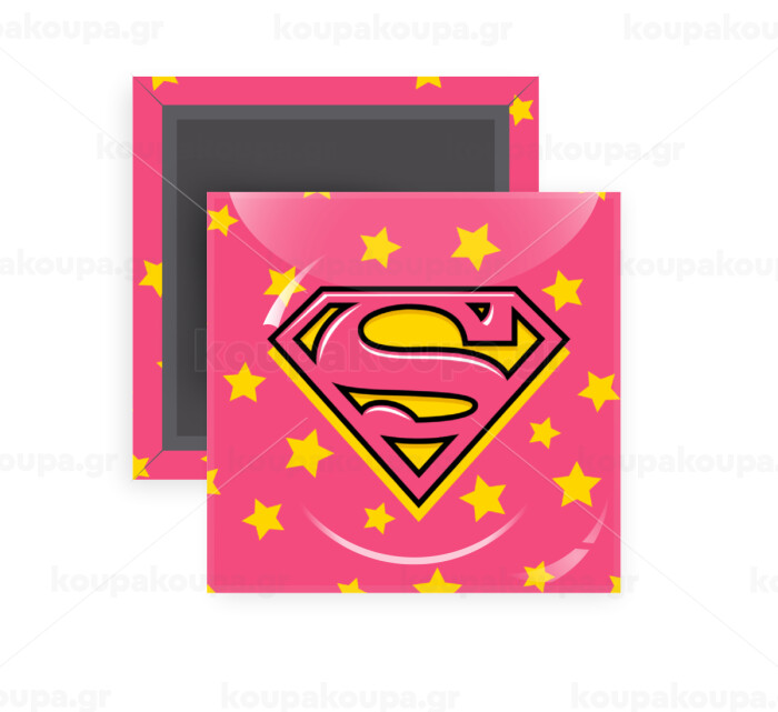 Superman Pink, Μαγνητάκι ψυγείου τετράγωνο διάστασης 5x5cm