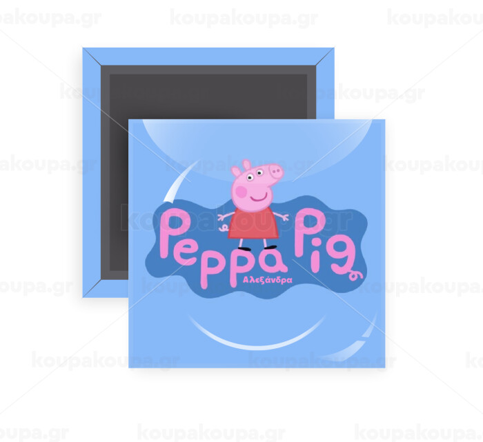 Πέππα το γουρουνάκι μπλε με όνομα, Μαγνητάκι ψυγείου τετράγωνο διάστασης 5x5cm