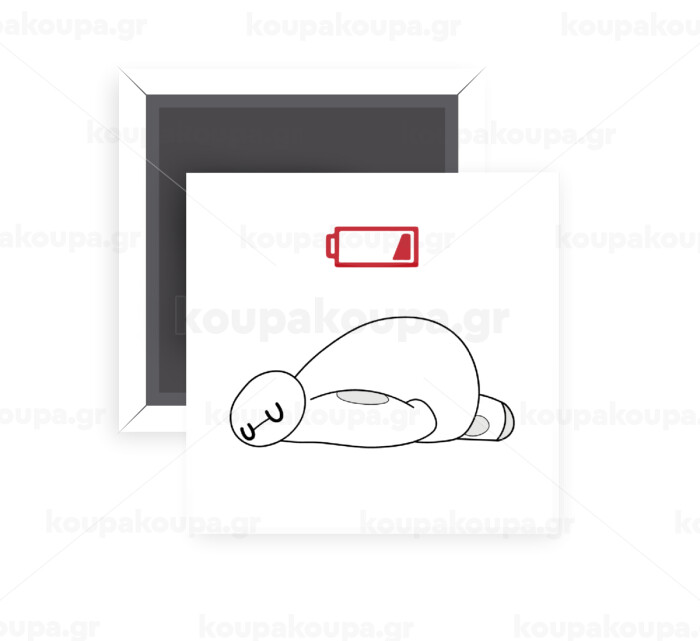 Baymax battery low, Μαγνητάκι ψυγείου τετράγωνο διάστασης 5x5cm