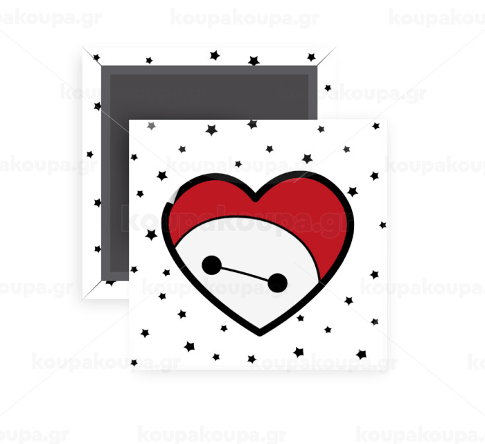 Baymax heart, Μαγνητάκι ψυγείου τετράγωνο διάστασης 5x5cm