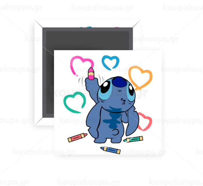 Lilo & Stitch painting, Μαγνητάκι ψυγείου τετράγωνο διάστασης 5x5cm