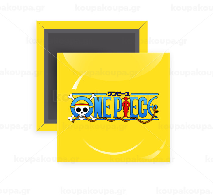 Onepiece logo, Μαγνητάκι ψυγείου τετράγωνο διάστασης 5x5cm