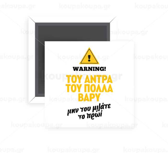 Του άντρα του πολλά βαρύ, Μαγνητάκι ψυγείου τετράγωνο διάστασης 5x5cm