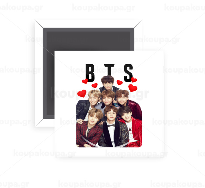 BTS hearts, Μαγνητάκι ψυγείου τετράγωνο διάστασης 5x5cm
