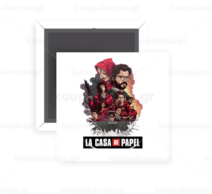 La casa de papel drawing cover, Μαγνητάκι ψυγείου τετράγωνο διάστασης 5x5cm