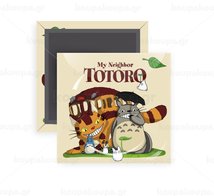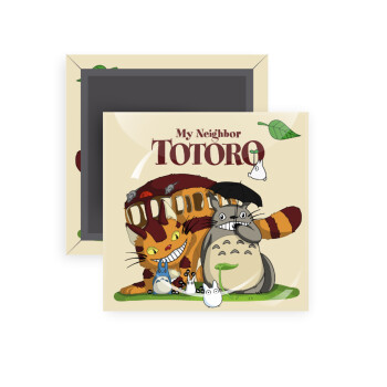 Totoro and Cat, Μαγνητάκι ψυγείου τετράγωνο διάστασης 5x5cm