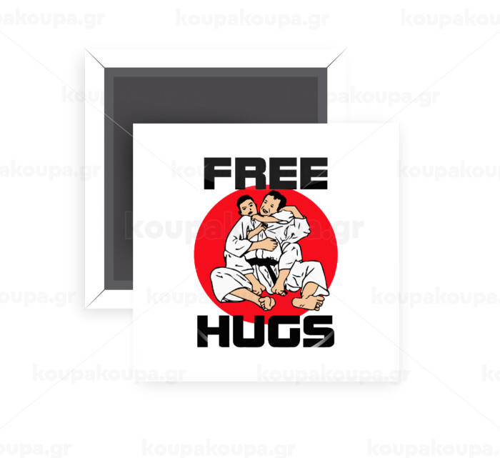 JUDO free hugs, Μαγνητάκι ψυγείου τετράγωνο διάστασης 5x5cm