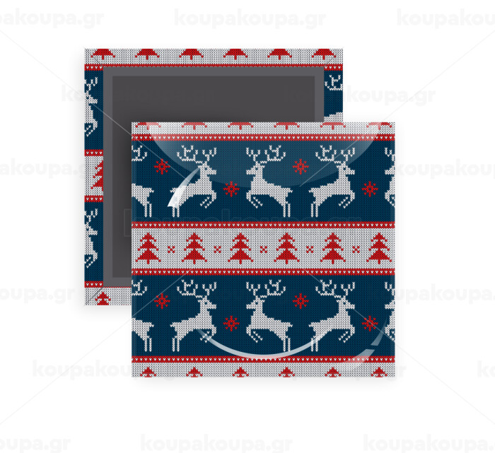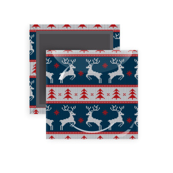 Deer knitted blue, Μαγνητάκι ψυγείου τετράγωνο διάστασης 5x5cm