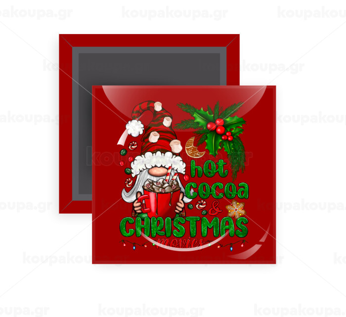 Hot cocoa and Christmas movies, Μαγνητάκι ψυγείου τετράγωνο διάστασης 5x5cm
