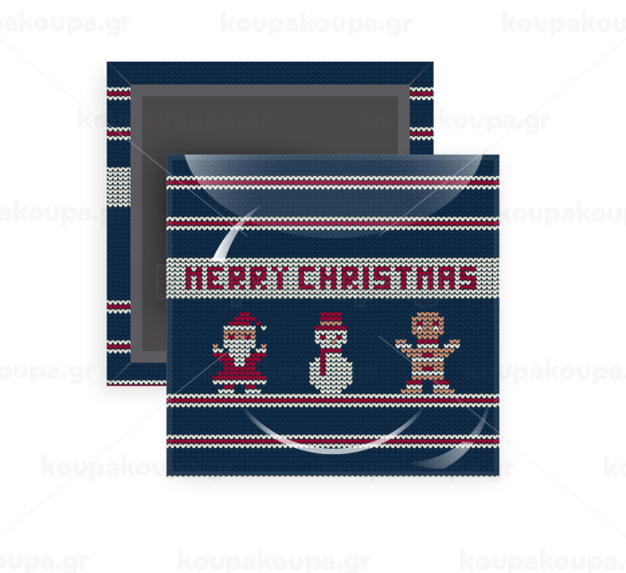 Merry christmas knitted, Μαγνητάκι ψυγείου τετράγωνο διάστασης 5x5cm