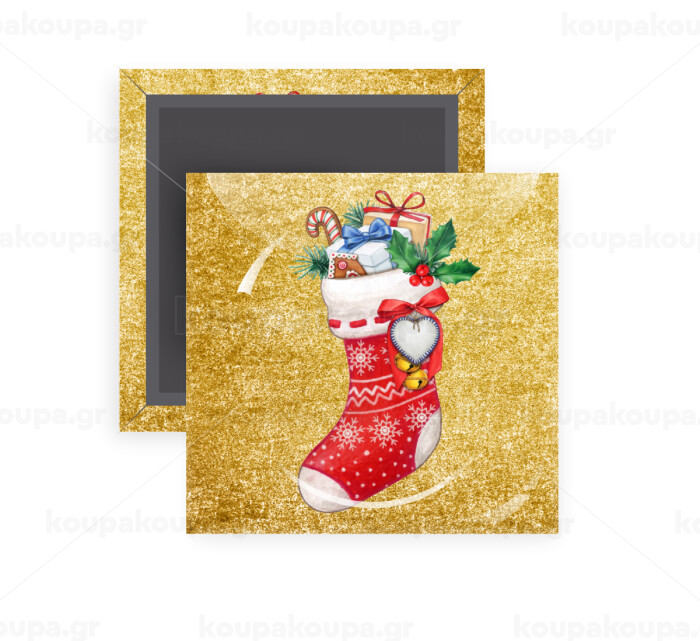 Xmas boot, Μαγνητάκι ψυγείου τετράγωνο διάστασης 5x5cm