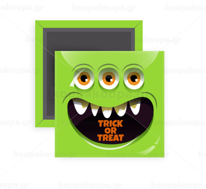 Halloween trick or treat 3 eyes monster, Μαγνητάκι ψυγείου τετράγωνο διάστασης 5x5cm