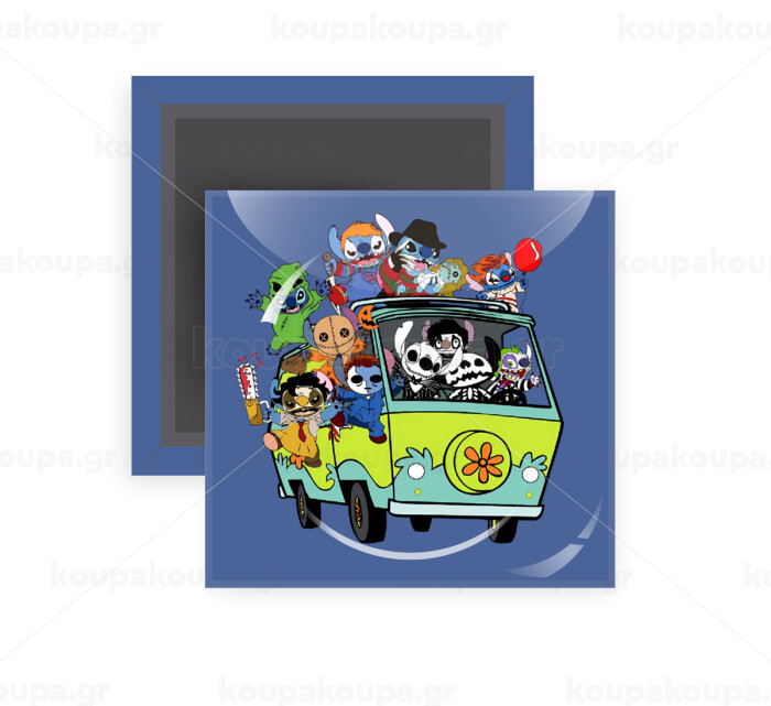 Stitch Halloween scooby car, Μαγνητάκι ψυγείου τετράγωνο διάστασης 5x5cm