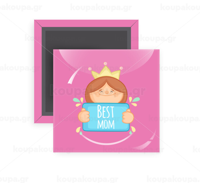 Best mom Princess, Μαγνητάκι ψυγείου τετράγωνο διάστασης 5x5cm
