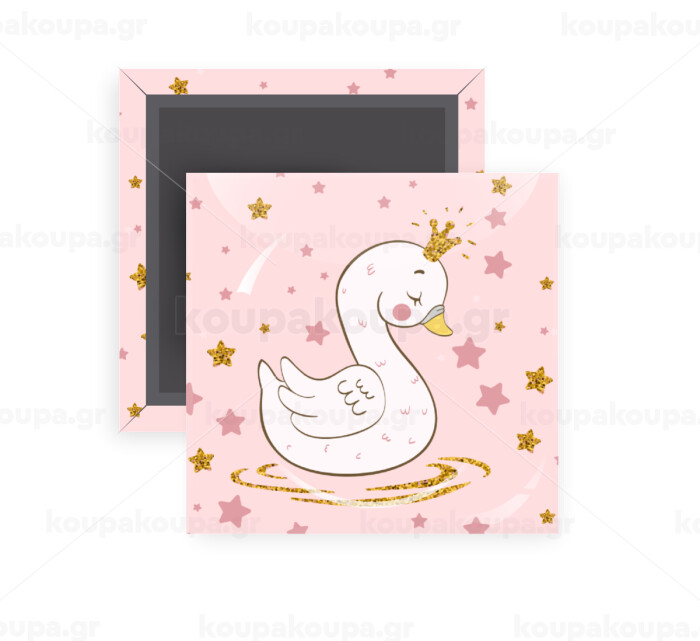 Crowned swan, Μαγνητάκι ψυγείου τετράγωνο διάστασης 5x5cm