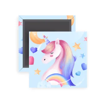 Cute unicorn, Μαγνητάκι ψυγείου τετράγωνο διάστασης 5x5cm