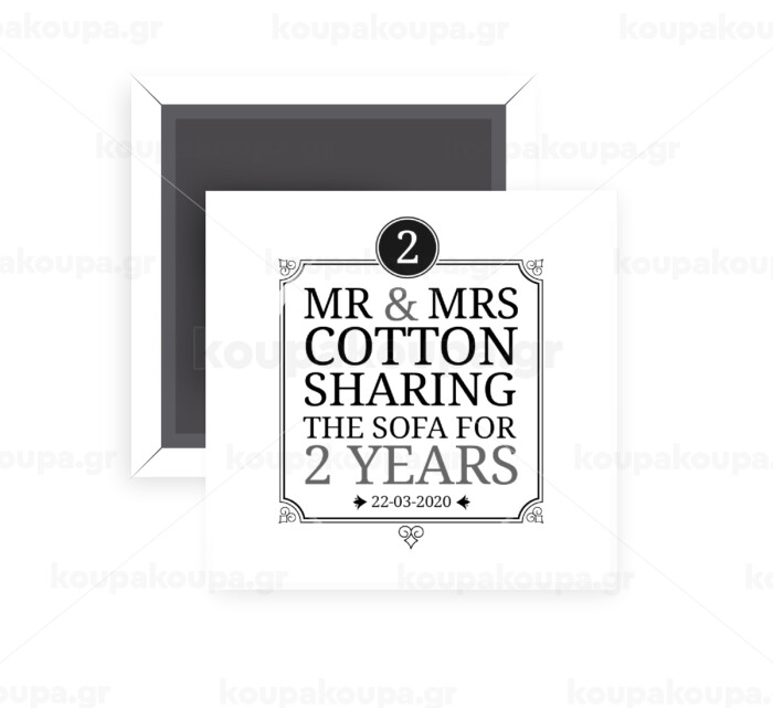 Mr & Mrs Sharing the sofa, Μαγνητάκι ψυγείου τετράγωνο διάστασης 5x5cm