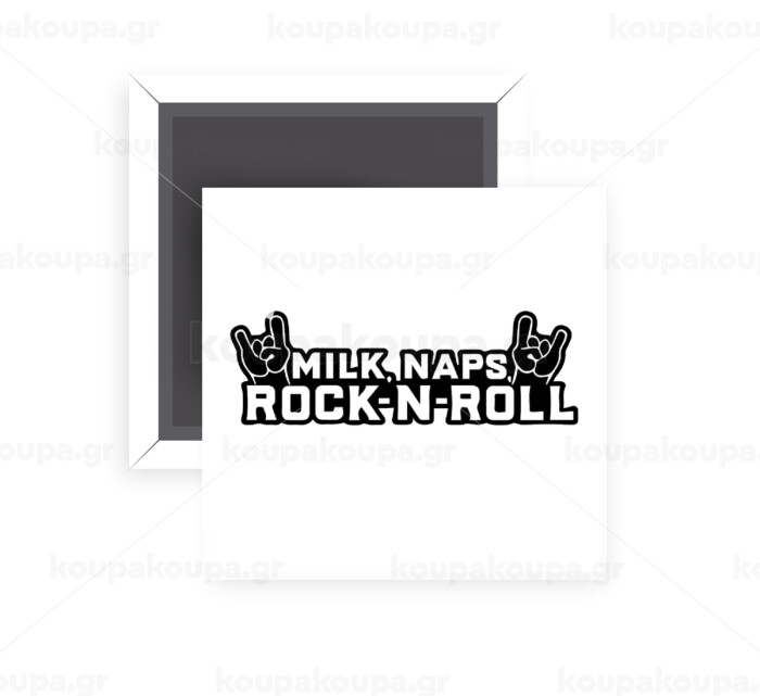 Milk, Naps, Rock N Roll, Μαγνητάκι ψυγείου τετράγωνο διάστασης 5x5cm