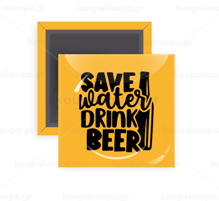 Save Water, Drink BEER, Μαγνητάκι ψυγείου τετράγωνο διάστασης 5x5cm