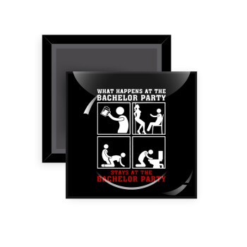 What happens at the bachelor party, stays at the bachelor party!, Μαγνητάκι ψυγείου τετράγωνο διάστασης 5x5cm