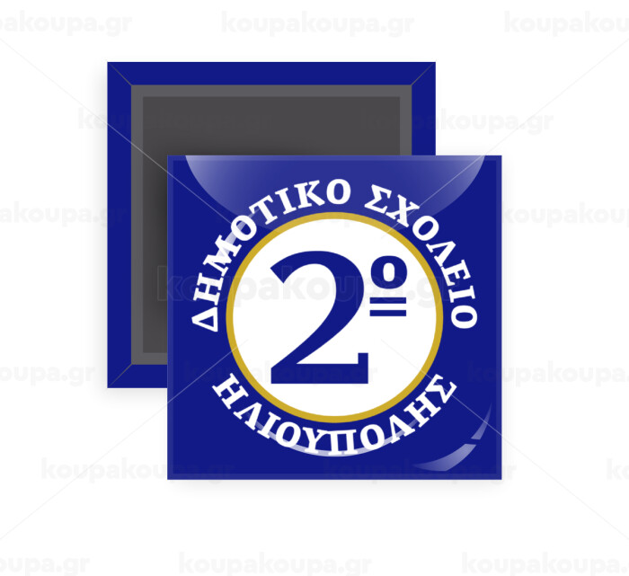 Έμβλημα Σχολικό μπλε/χρυσό, Μαγνητάκι ψυγείου τετράγωνο διάστασης 5x5cm
