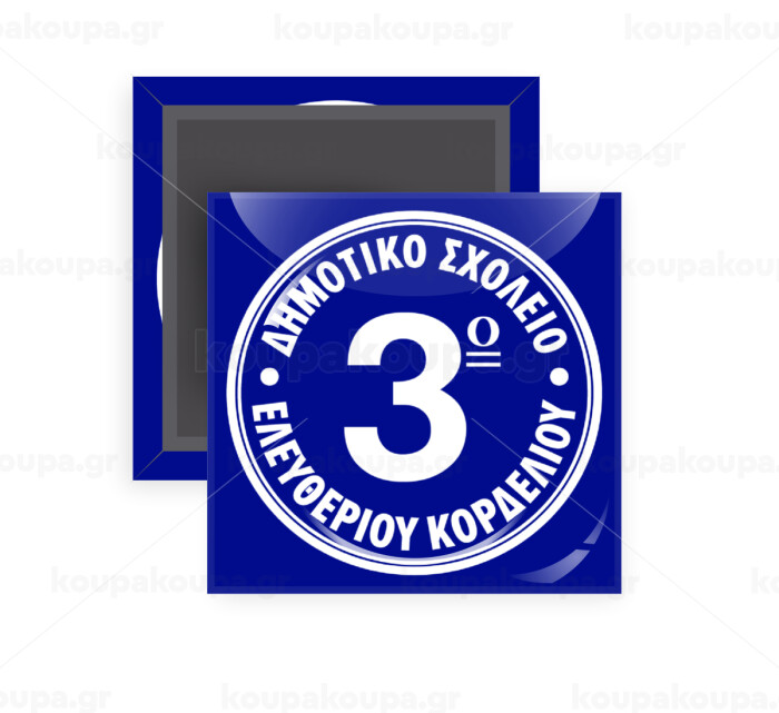 Έμβλημα Σχολικό μπλε, Μαγνητάκι ψυγείου τετράγωνο διάστασης 5x5cm