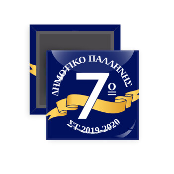 Σχολική μπλε με κορδέλα, Μαγνητάκι ψυγείου τετράγωνο διάστασης 5x5cm