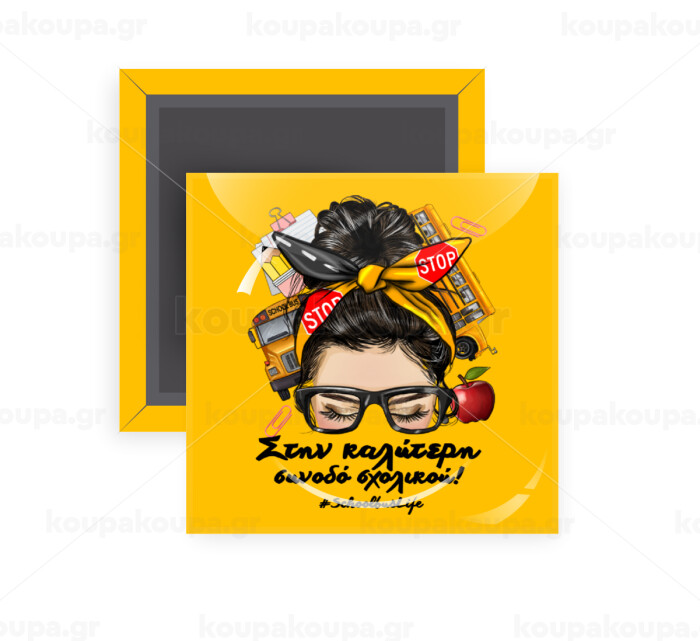 Στην καλύτερη συνοδό σχολικού!, Μαγνητάκι ψυγείου τετράγωνο διάστασης 5x5cm