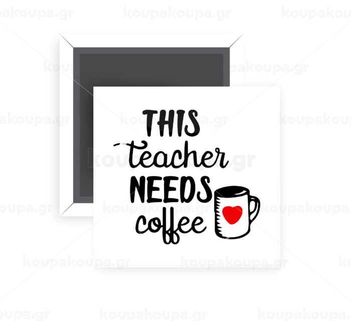 Τhis teacher needs coffee, Μαγνητάκι ψυγείου τετράγωνο διάστασης 5x5cm
