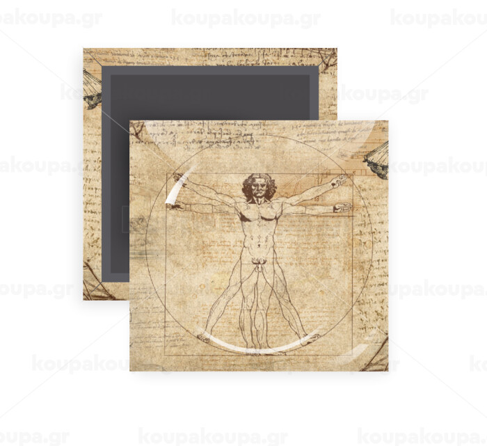 Leonardo da vinci Vitruvian Man, Μαγνητάκι ψυγείου τετράγωνο διάστασης 5x5cm