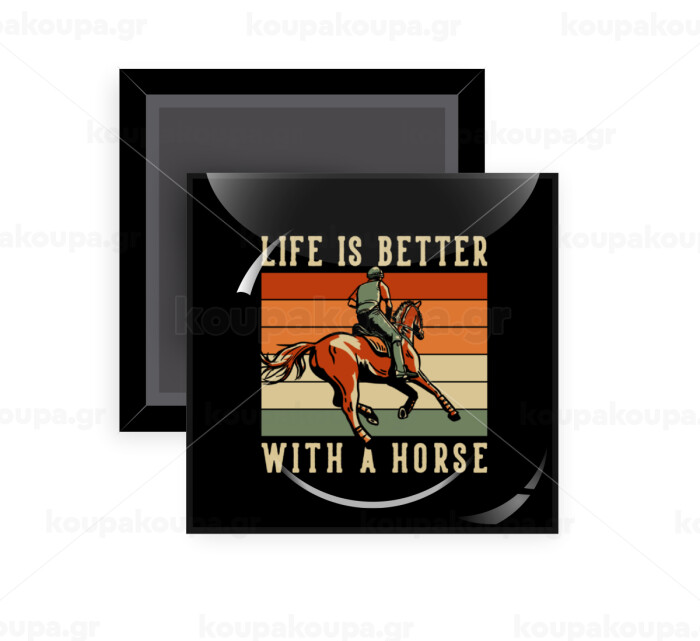Life is Better with a Horse, Μαγνητάκι ψυγείου τετράγωνο διάστασης 5x5cm