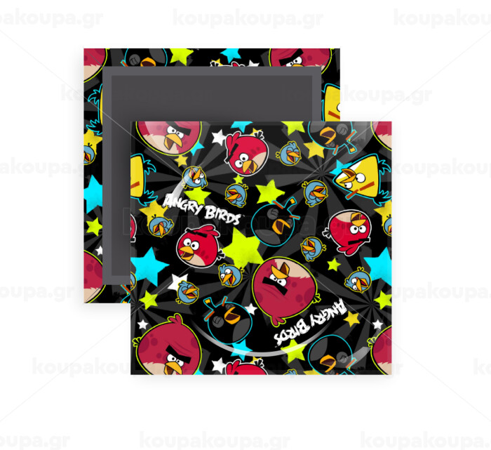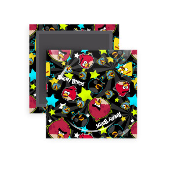 Τα πουλάκια angry birds μαύρο, Μαγνητάκι ψυγείου τετράγωνο διάστασης 5x5cm
