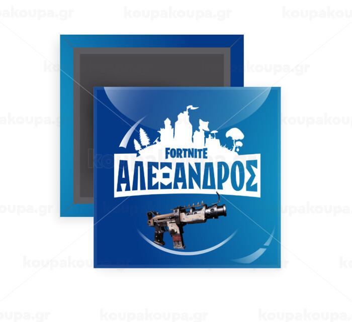 Fortnite with gun με το όνομα σου, Μαγνητάκι ψυγείου τετράγωνο διάστασης 5x5cm